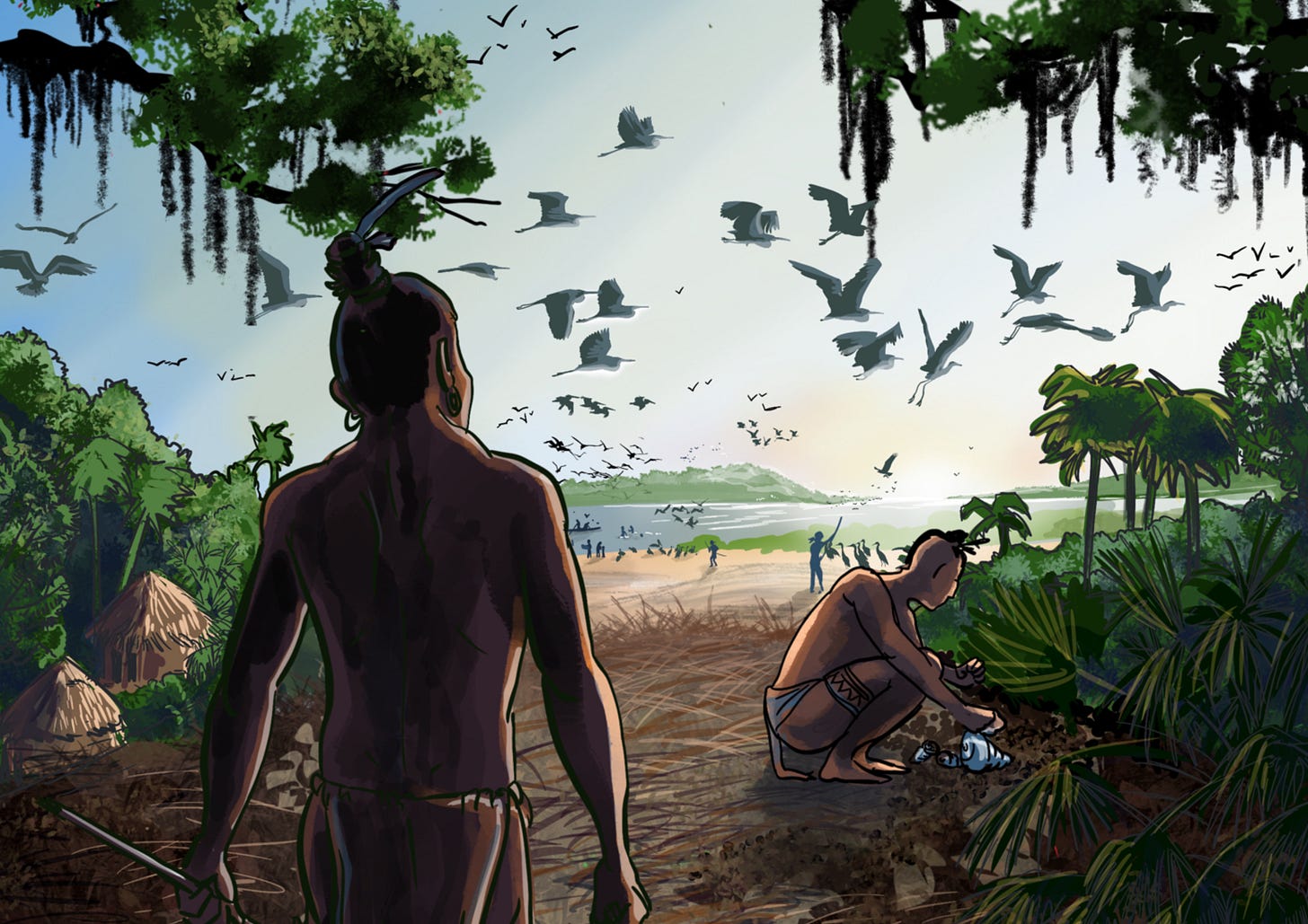 So while the Maximo/Pinellas Point people may have been hunters and foragers, they lived in a highly structured civilization that traded and warred with neighboring Indigenous peoples, like the Mosoco, a local branch of the Timucuan people from the Jacksonville area, and the Calusa of South West Florida. Given that dugout canoes rather than roads were the means of transportation, we can imagine a network of cultures in full swing before contact in Tampa Bay.